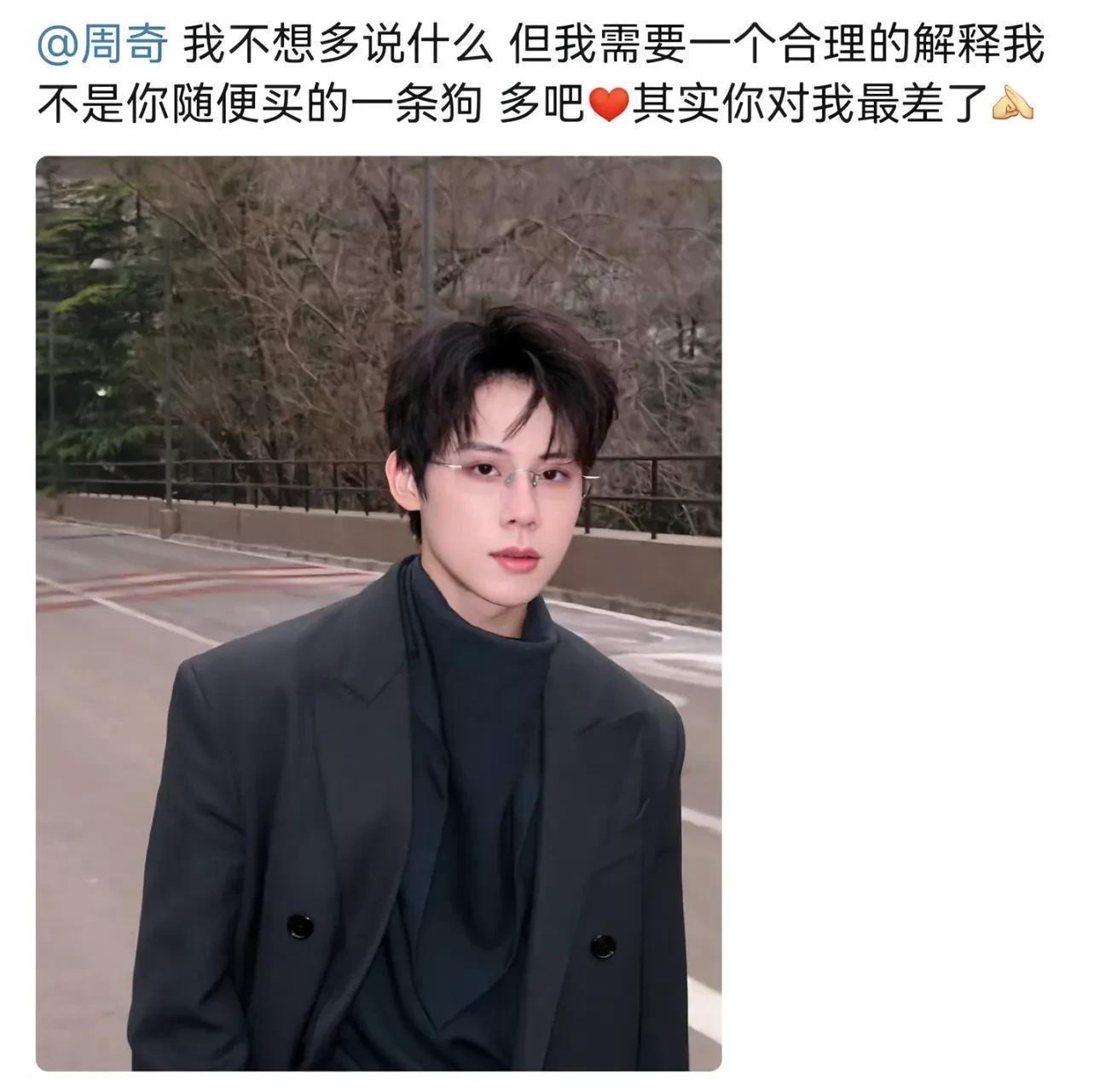 7. 周奇:司晓迪直接喊话他:“我不是你随便买的一条狗,你对我最差了”,语气满是委屈愤怒。周奇已发声明否认,称会用法律保护自己。