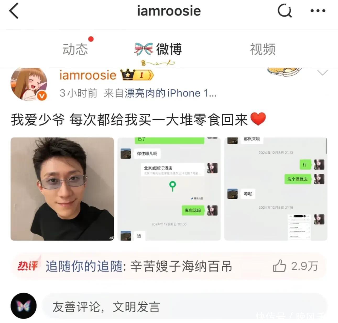 6. 张一山:司晓迪没直接点名,只贴出他的大头照,称“我爱少爷,每次都给我买一大堆零食”,还提及两人聊过酒店相关的事,暗示关系不一般。目前张一山这边暂未正式回应。